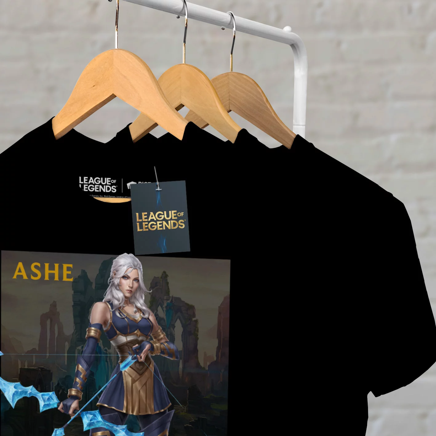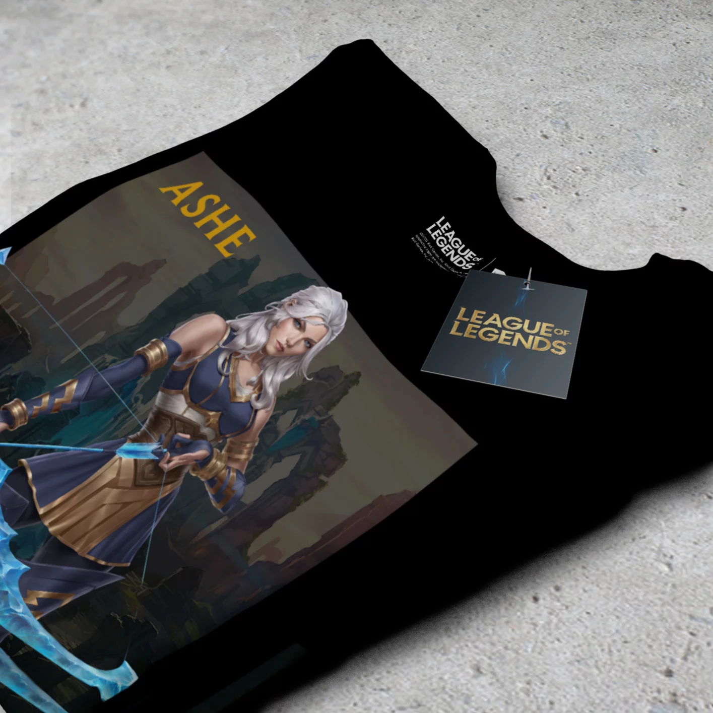 A jeges íjásznő, Ashe most a pólóján is megjelenik! A League of Legends hősnőjének stílusos mintája első pillantásra magával ragad, és egyértelművé teszi, kinek szurkol a Summoner’s Riften.