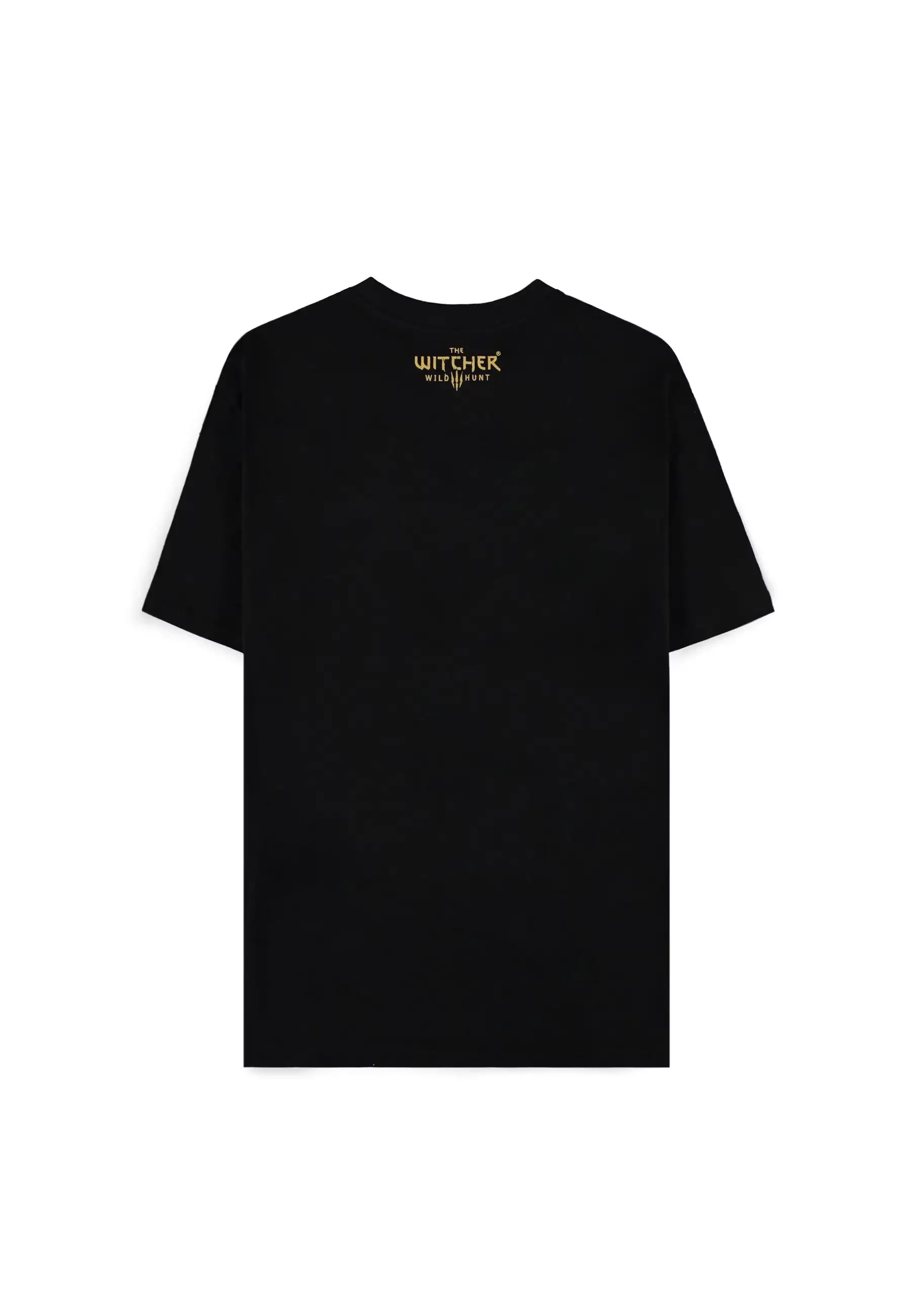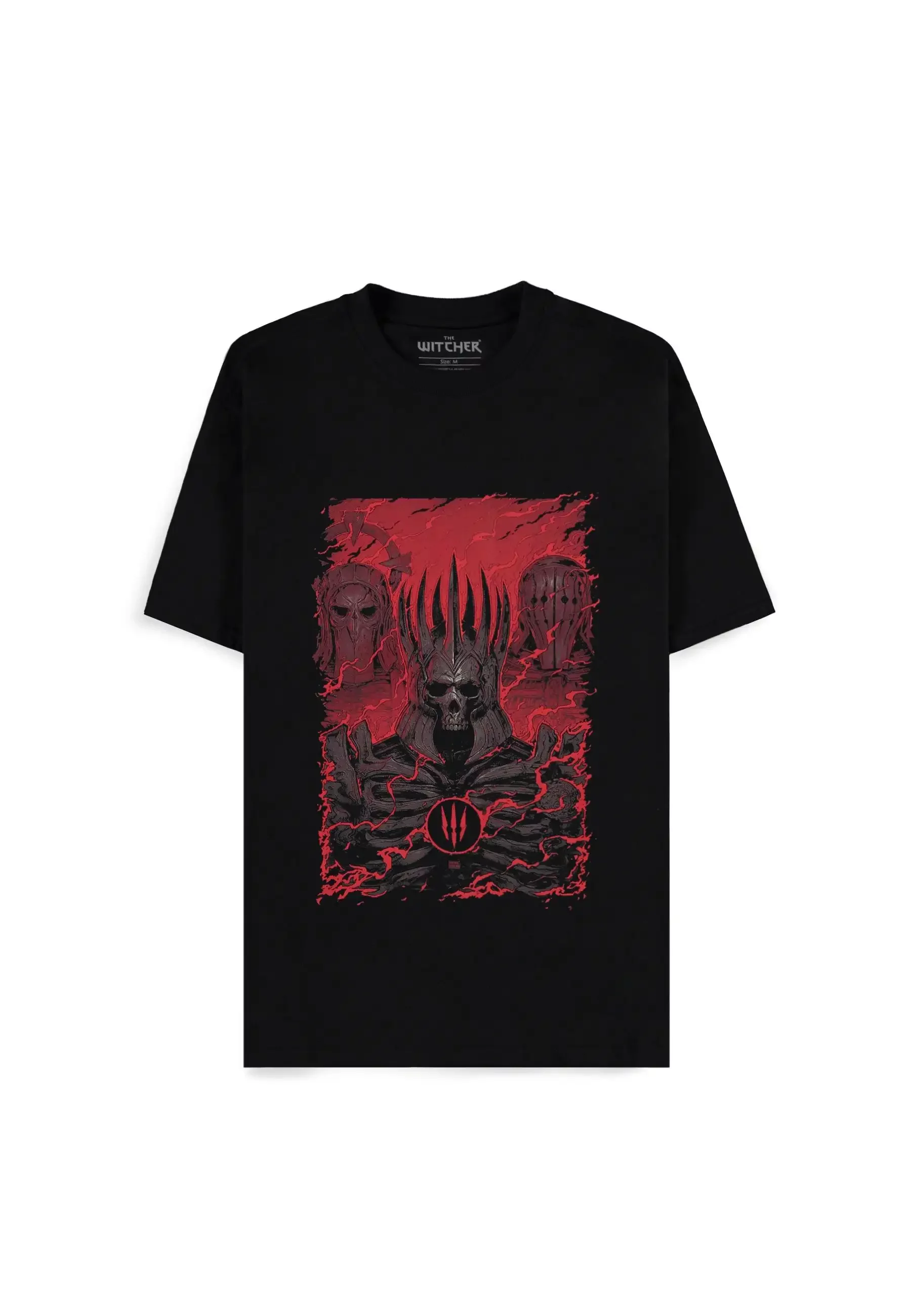 A sötétség a Vad Vadászattal érkezik. A The Wild Hunt póló a Vaják világának ikonikus fenyegetését helyezi előtérbe: Eredin király félelmetes koponyáját, amelyet kísértetek vesznek körül, és azonnal magára vonja a figyelmet.