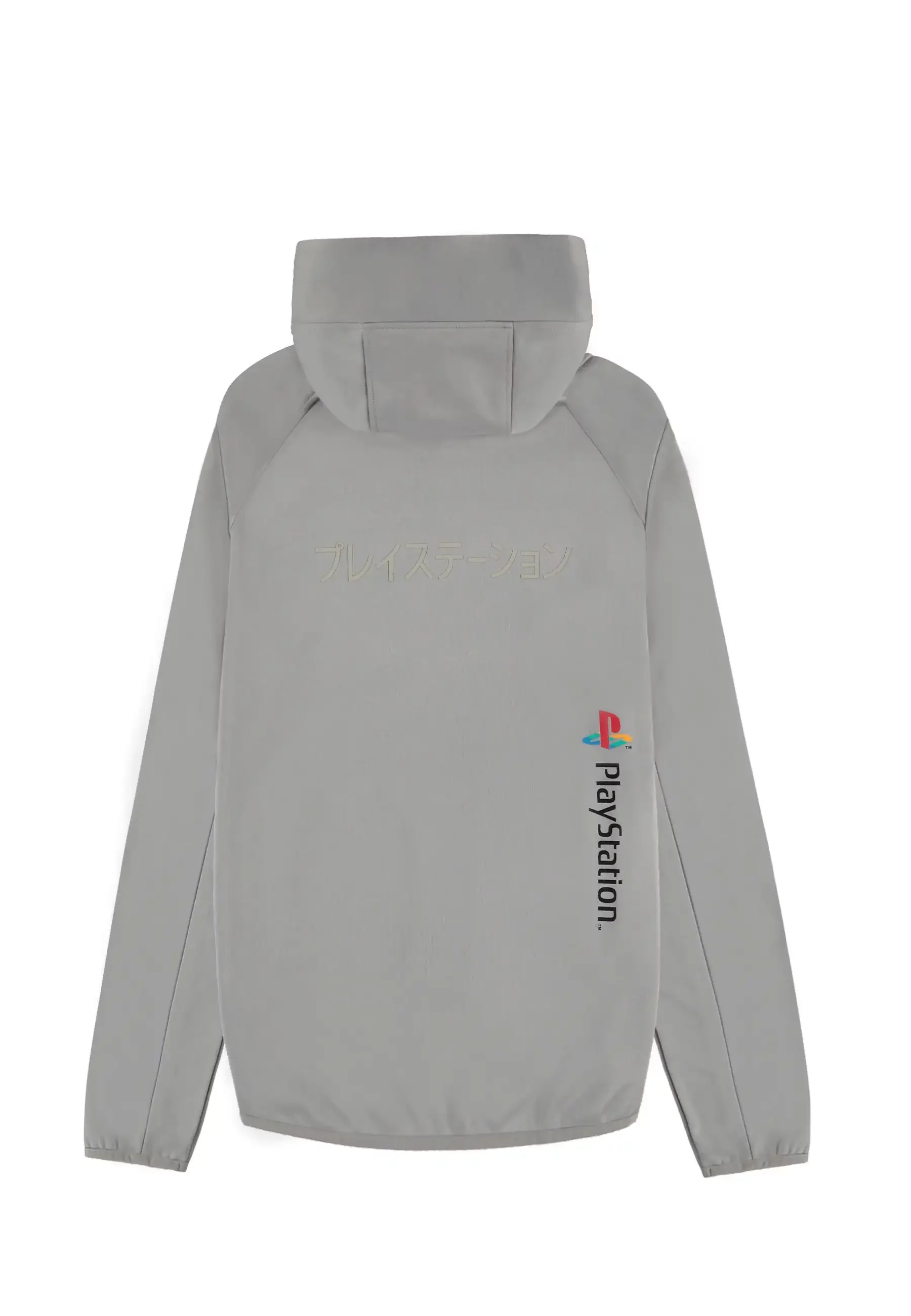 PlayStation pulóver – Logo Technical Hoodie szürke változatban visszafogott dizájnt kínál a konzolalogóval a mellkason és a háton, kiegészítve a japán „PlayStation” felirattal. A könnyű technikai anyag és a cipzár ideális választássá teszi a mindennapi viselethez és a hosszú játékmenetekhez egyaránt.