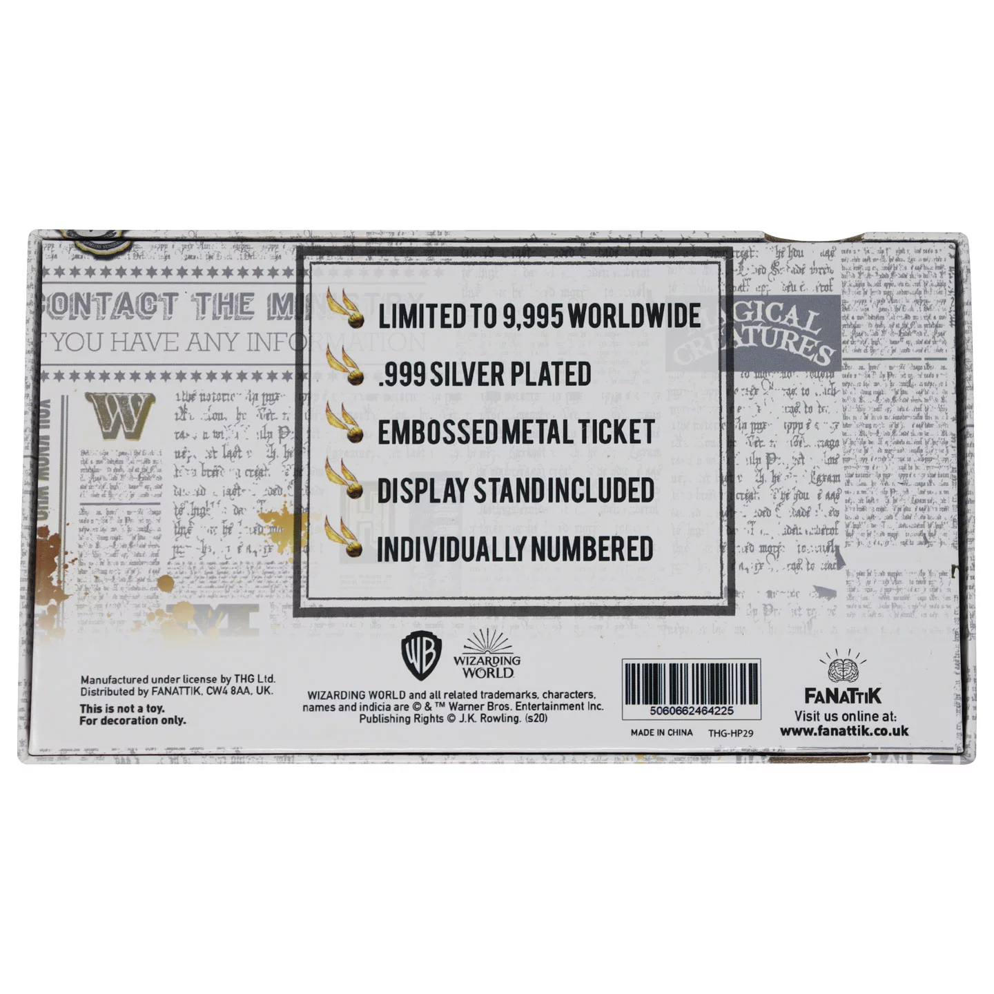A csomag tartalmaz egy tartóállványt a kiállításhoz, és minden egyes darab egyedileg számozott. A mindössze 9 995 példányra limitált kiadás értékes és különleges kiegészítője lehet bármely gyűjteménynek, amely örömet szerez minden varázsvilág-kedvelőnek.