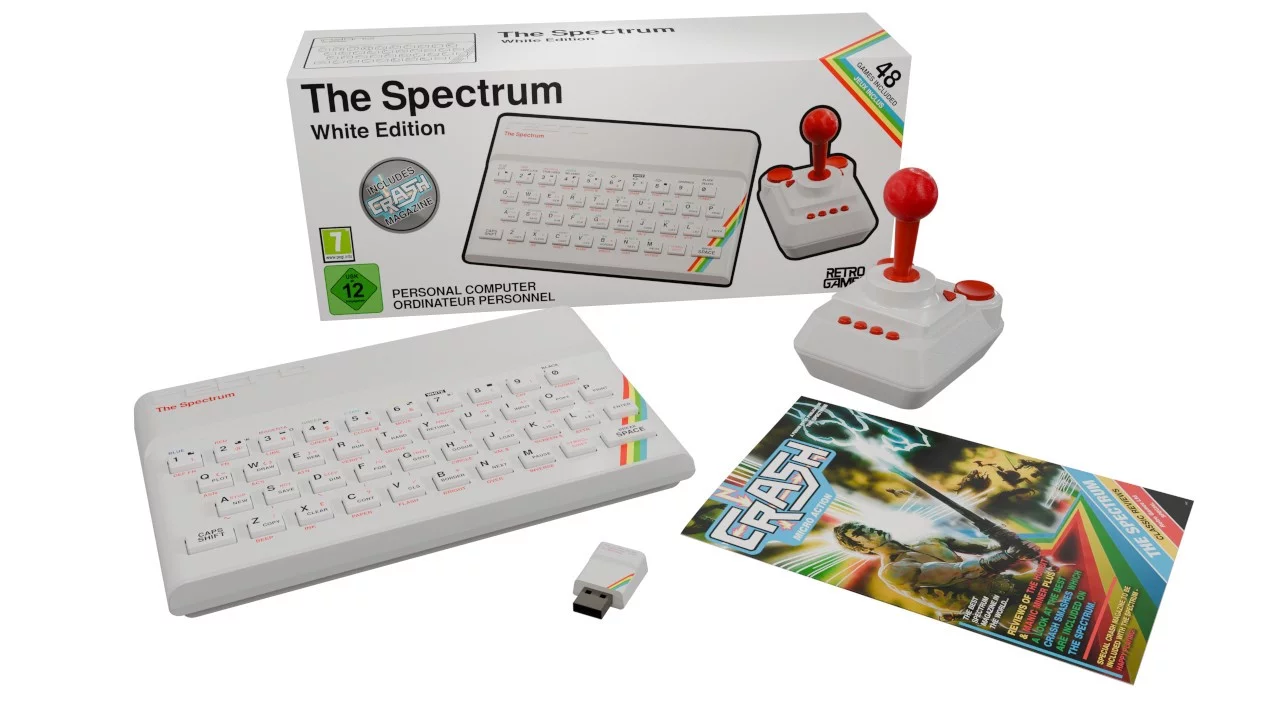 A The Spectrum tökéletesen megragadja az eredeti esszenciáját, teljesen működő billentyűzettel, valamint a 48K és 128K modellek emulációjával. A számítógép 48 előre telepített, korszakalkotó játékot tartalmaz – többek között a Manic Miner, a The Hobbit, a Head over Heels és a The Great Escape címeket –, amelyek egy felhasználóbarát menüből könnyedén elérhetők.