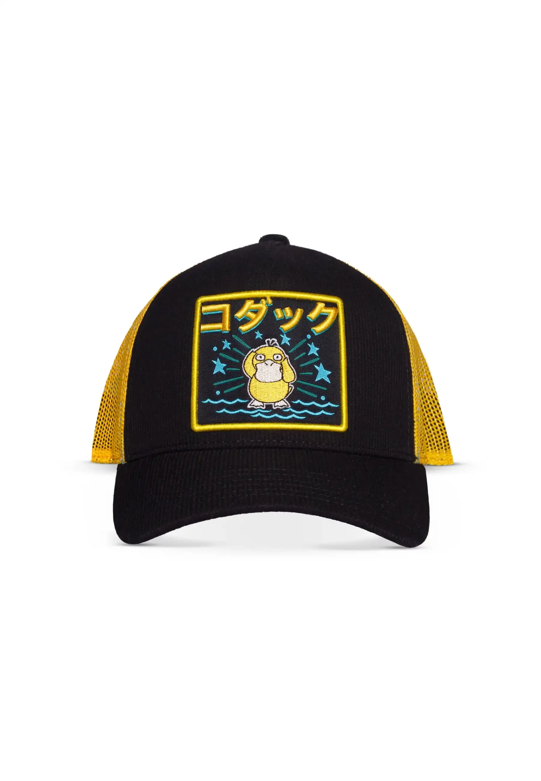 Stílusos trucker sapka Psyduck motívummal, amely a kényelmet, a karakteres dizájnt és a nosztalgiát ötvözi minden Pokémon-rajongó számára. Kiváló választás mindennapi viselethez és játékos eseményekre is.Anyag: poliészter
