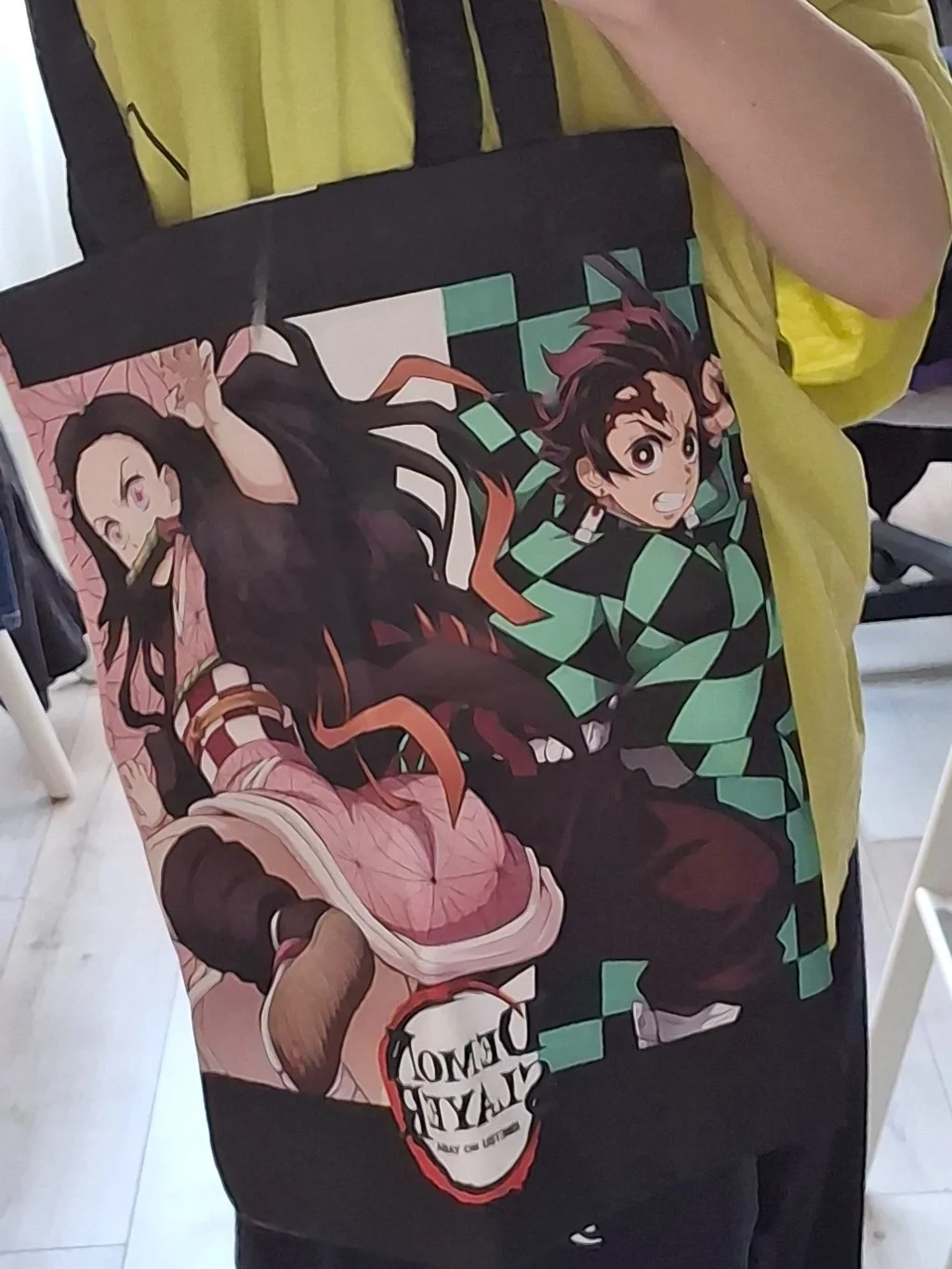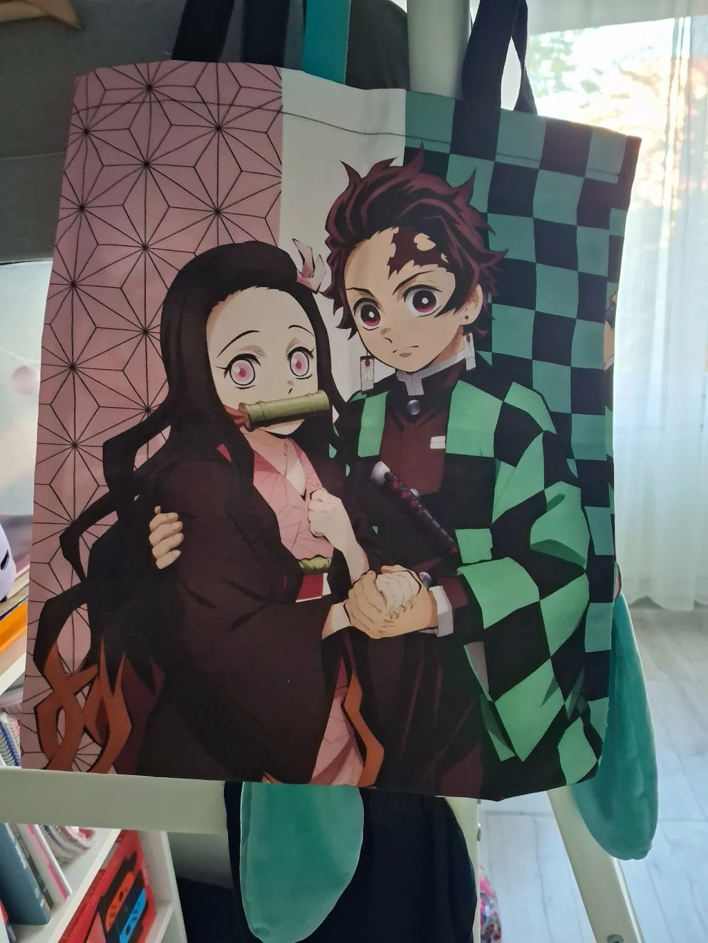 A gyönyörű vászontáska a híres Démonölő sorozat főszereplőivel, Tanjiróval és Nezukóval jól fog szolgálni, ha vásárolni, kirándulni vagy strandolni mész.Méret: kb. 35 x 42 cm
