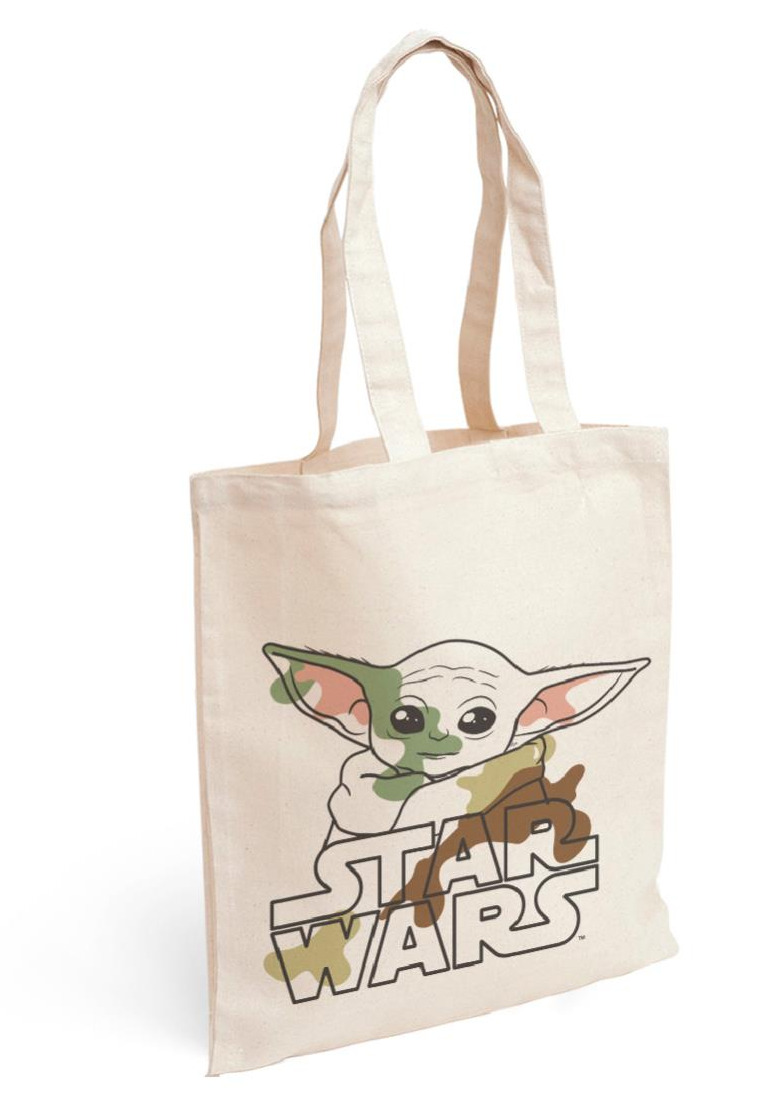 Gyönyörű vászontáska A Gyermek (más néven Baby Yoda) a nagyon népszerű Star Wars sorozatból, A mandaloriánusból, bevásárláshoz vagy a strandra.