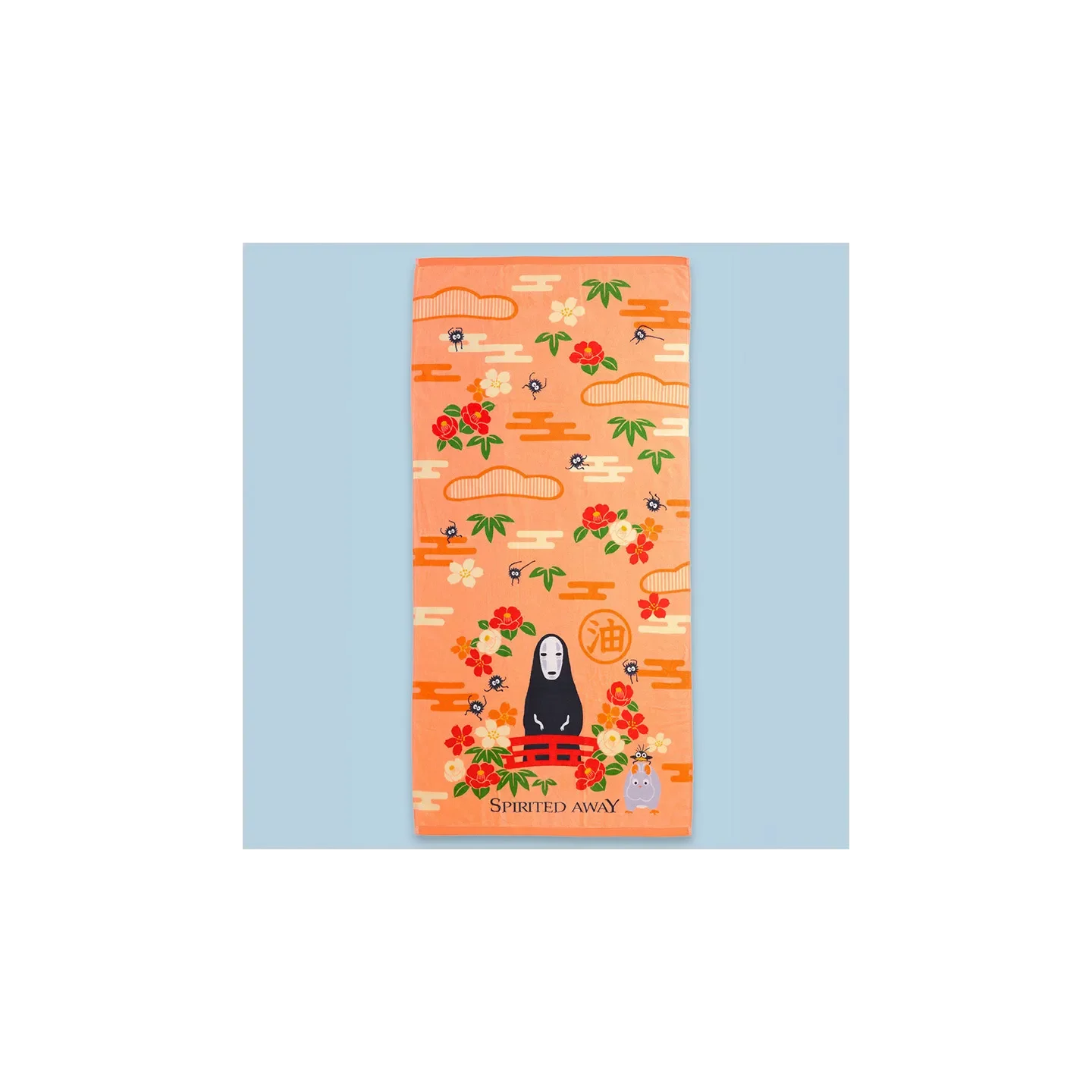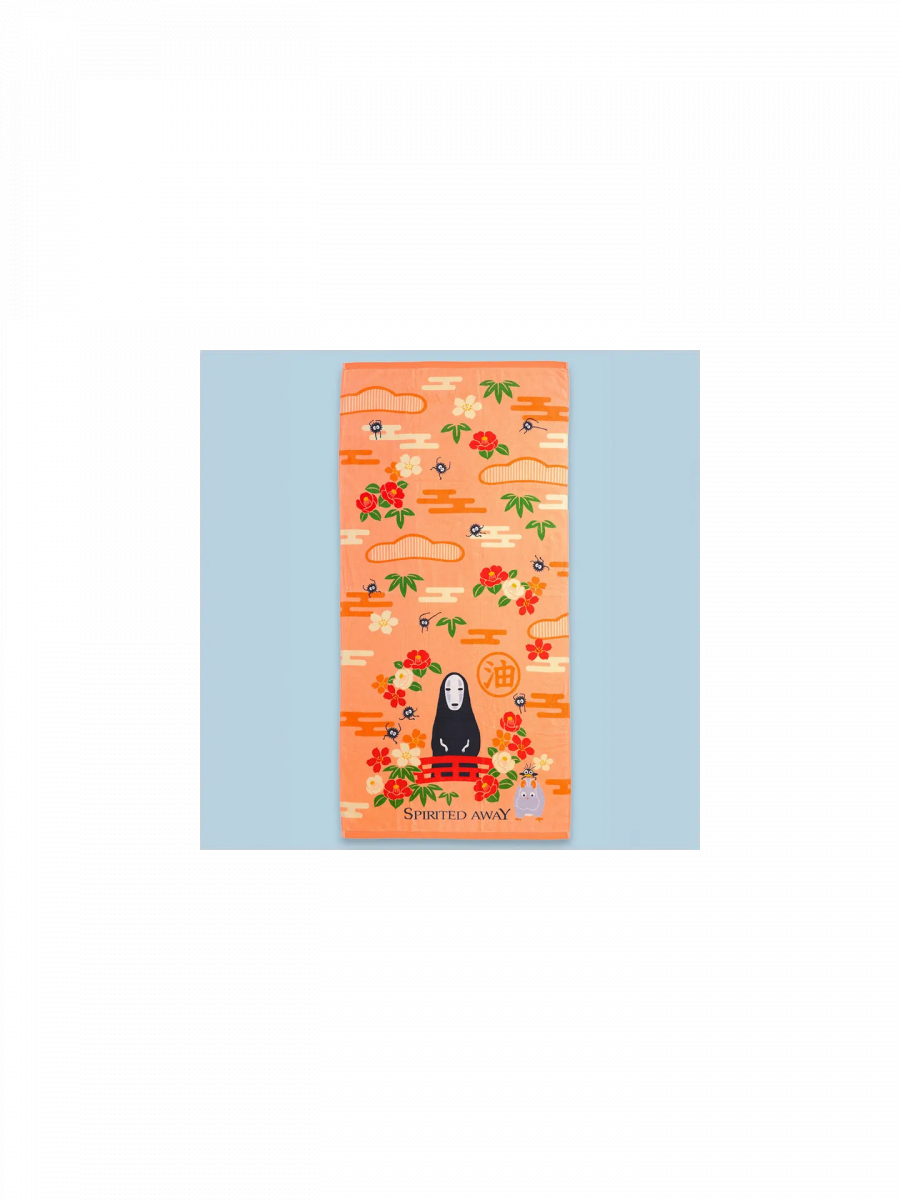 A Spirited Away titokzatos hangulata finom, virágos stílusban. Ez a törölköző No-Face motívummal az ikonikus karaktert egy színes, virágokkal és apró részletekkel teli világba helyezi, amely azonnal magára vonja a figyelmet.