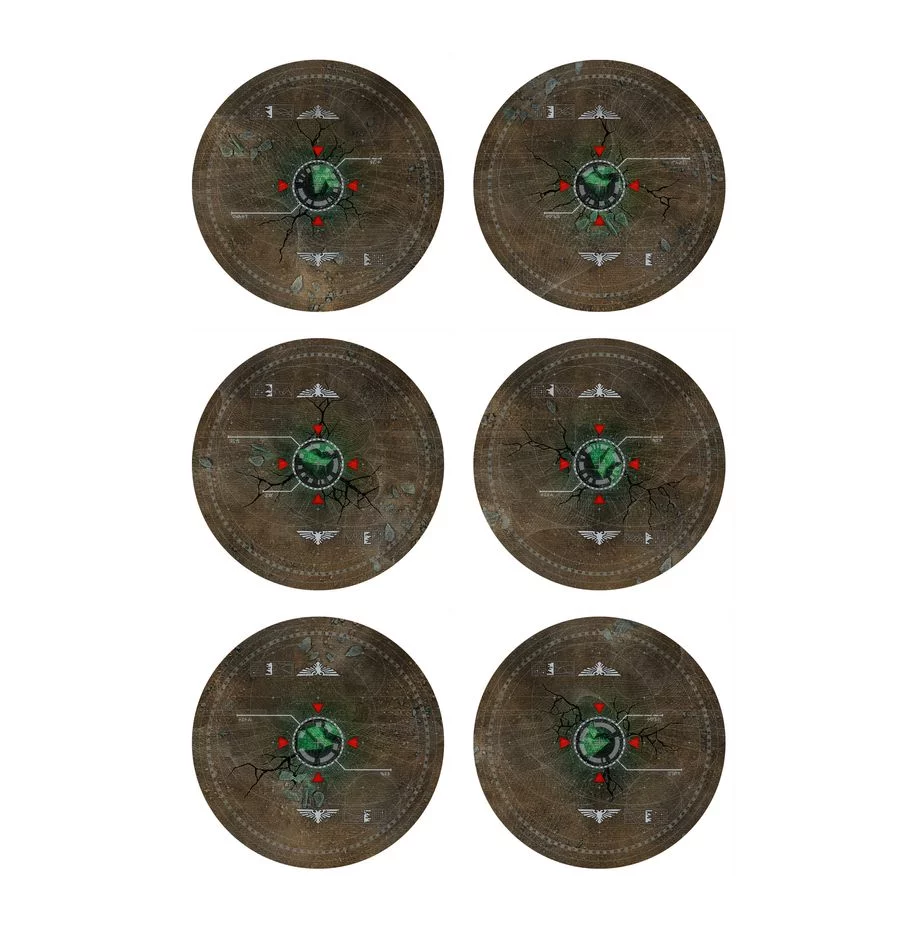 Mindegyik marker egy normál célpont teljes irányítási tartományát lefedi, és a terep és a modellek alá helyezhető, hogy a játék során rendben tartsd a csatateret.