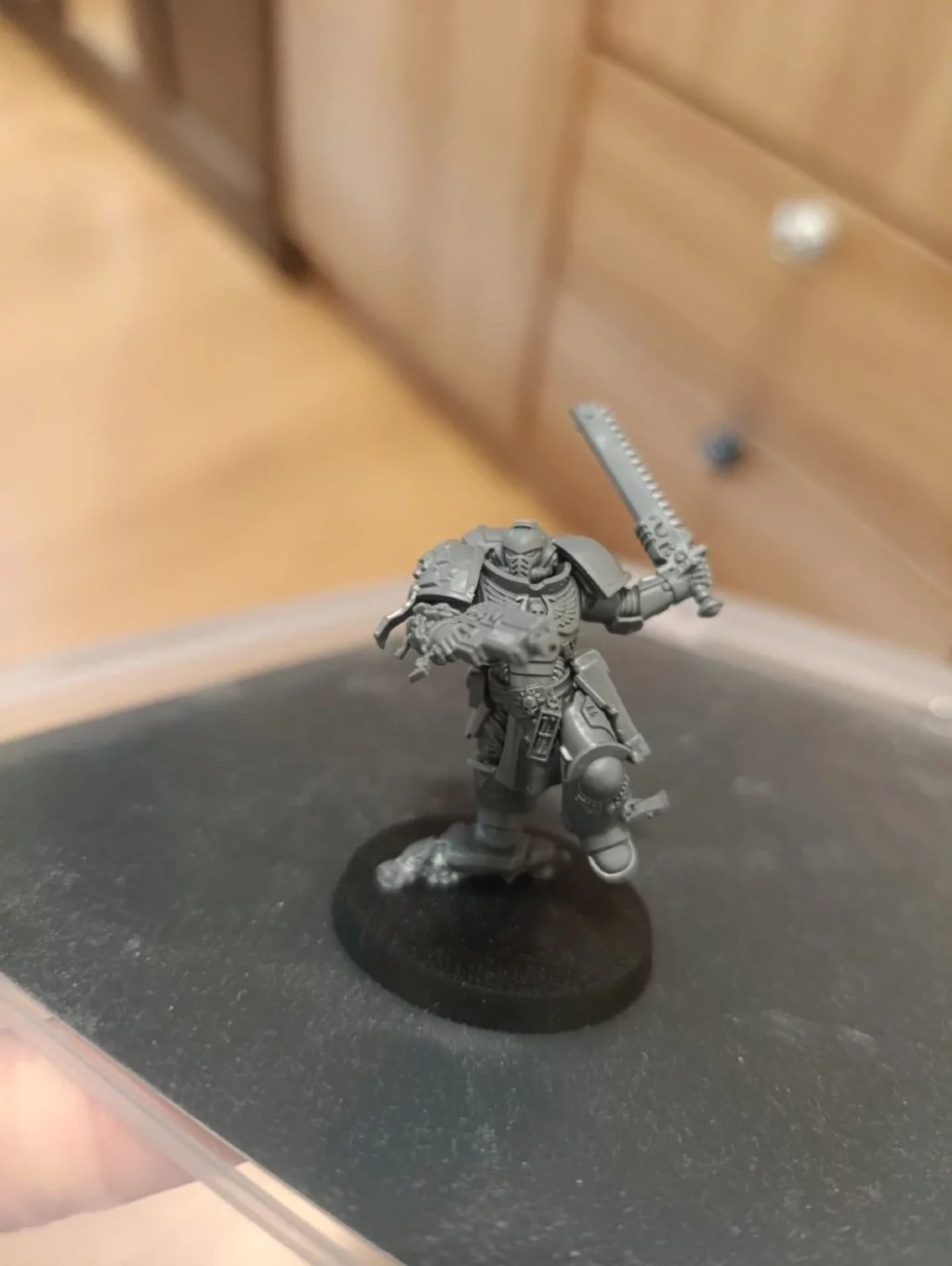 Bár sem Space Marine, sem pedig Warhammer 40k játékkal nem játszom Ultramarines-zal. De Titust mindenképp meg akartam venni, mint emléket. És proxy figuraként fogom használni a játék során. A modellt kitbasholtam egy hadnagyi sisakkal, amely az övén lóg. Az alapot kiegészítettem egy démon, ork és tyranid koponyájával, hogy Titus minden ellenfele a lábai előtt legyen.