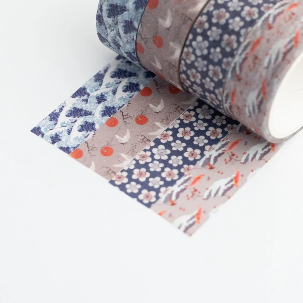Kelts életre scrapbookjaidat és naplóidat ezekkel az elegáns, Hokusai mesterműve által ihletett washi szalagokkal. A csomag négy különböző mintát tartalmaz, amelyek a japán természetet, finom virágmotívumokat és a Kanagawai Nagy Hullám ikonikus hangulatát idézik.