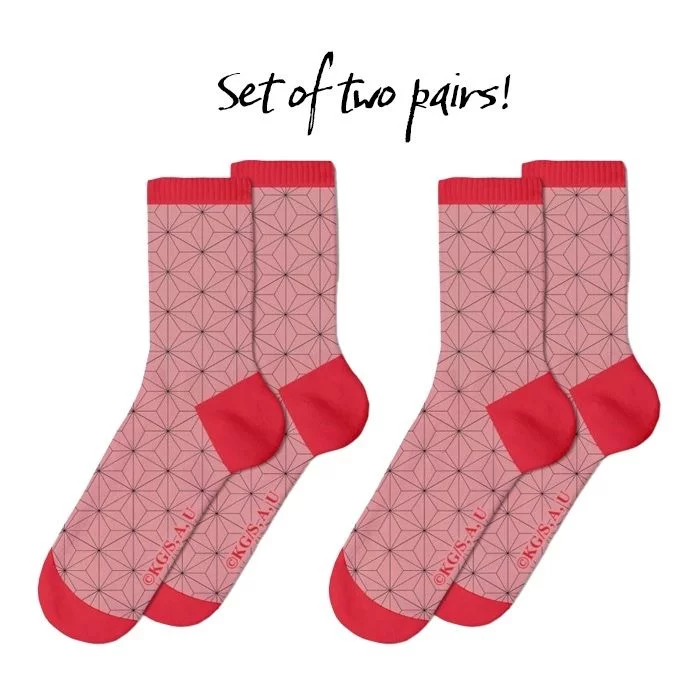 Demon Slayer zokni – Nezuko Kamado (2 pár) ikonikus rózsaszín mintával, ami a kimonójából merít inspirációt. Kényelmes, puha, és tökéletes minden Kimetsu no Yaiba-rajongónak, aki szeretne egy csipet démoni eleganciát vinni a ruházatába.