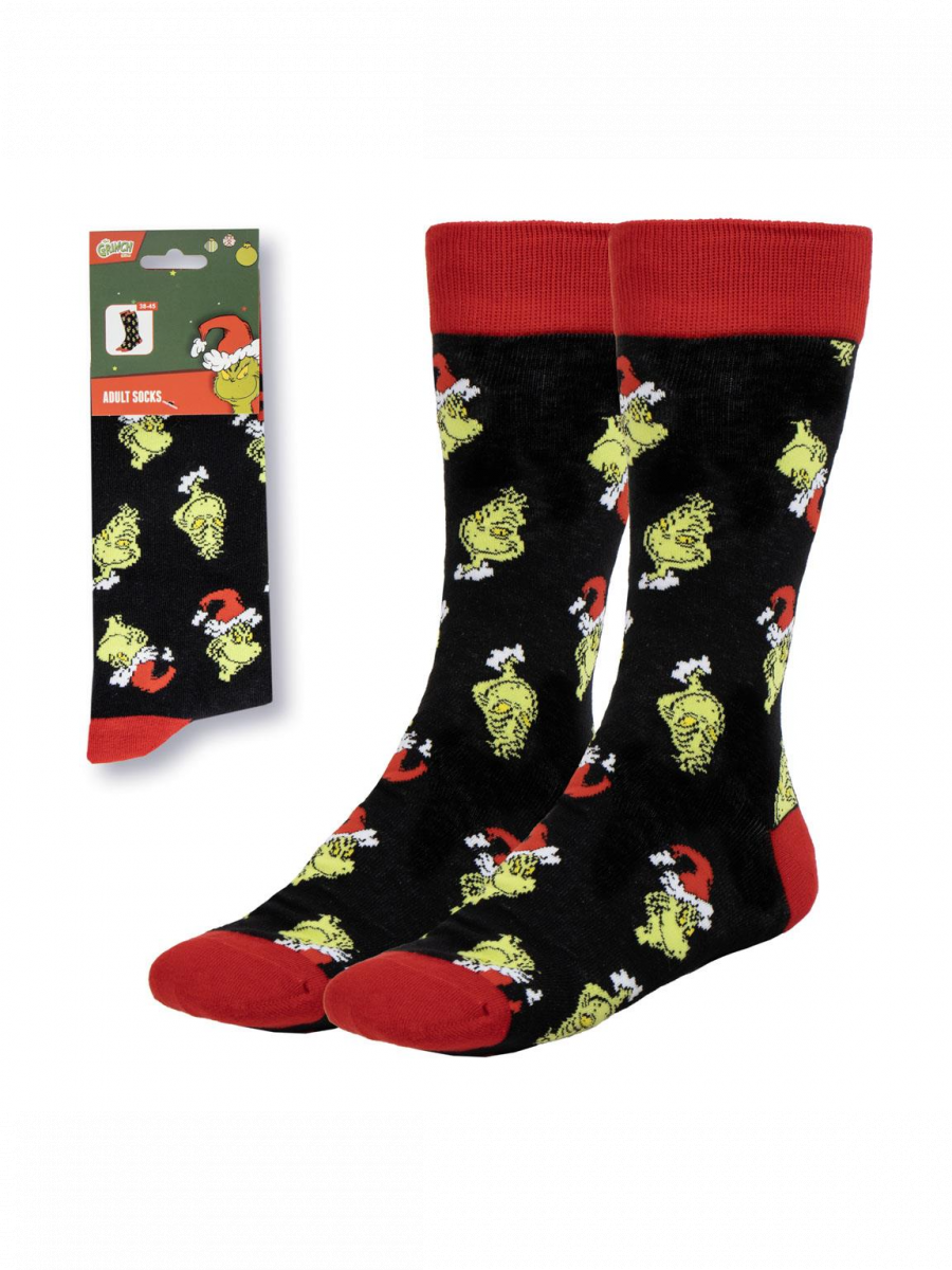 A Grinch mintás zoknik egy csipet pimasz humort és ünnepi hangulatot csempésznek a mindennapi outfitbe. A sötét alapon megjelenő karakteres minta piros részletekkel kiegészítve azonnal magára vonja a figyelmet, és minden rajongót megörvendeztet ennek az ikonikus figurának.